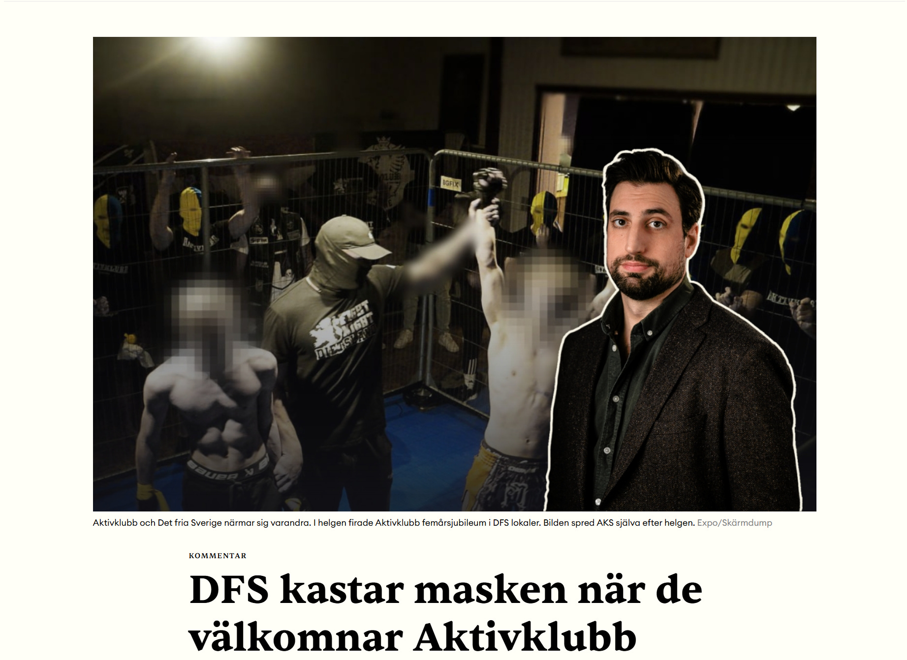 Det rimliga är förstås att ignorera, alternativt hånskratta åt Expo. I dag tänker jag göra ett undantag och faktiskt svara på deras senaste försök att svartmåla Det fria Sverige. Jonathan Lemans artikel om att DFS “kastar masken när de välkomnar Aktivklubb” (arkiverad version här) är nämligen ett bra underlag för en viktig diskussion.